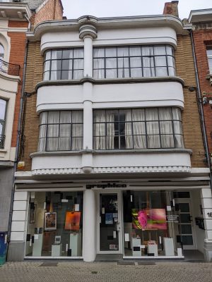 Ein bisschen schmerzt auch hier der Anblick von kaputten Glasscheiben, aber man hat auch das Gefühl der Authentizität und irgendwie ist es toll, wenn in so einem Haus ganz normale Menschen leben. Und man es nicht als Firmensitz oder sonst etwas Etabliertes herausgeputzt hat. Der kleine Erker und die historistische Traufkante des Hauses zeigen Guiannottes Ursprung und das ganze Haus scheint mir irgendwie „belgischer Jugendstil in a Nutshell“ zuzurufen. Gilt dieser doch als perfektes Bindeglied zwischen dem angelsächsischen Arts-and-Crafts-Ursprung und dem eher eleganten Art Nouveau Frankreichs.